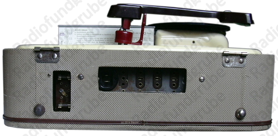 Zur Aufnahme bietet das Gerät noch die Möglichkeit über einen Aufnahmeregler und den Eingangsbuchsen für Radio und Mikrofon verschiedene Signalquellen wie z.B. Platte und Mikrofon oder Radio und Mikrofon zu mischen.